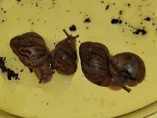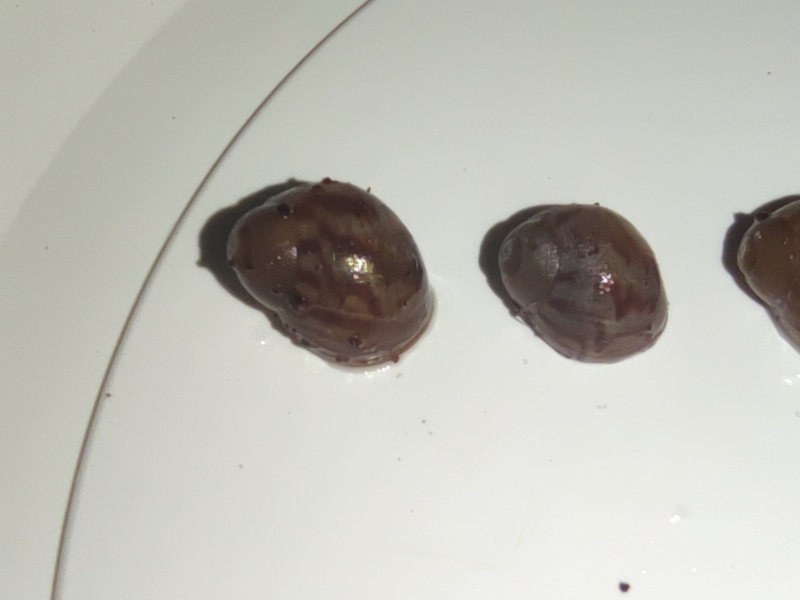 In diesem Bodengrund aus dem Müllbeutel haben wir haufenweise Babyschnecken gefunden. Betimmt 30 Stück. 9 Stück sind noch am Leben. 6 fulicas und 3 Tiger. bin mir zumindest ziemlich sicher, dass es Tiger sind, möchte jetzt aber hier auf Nummer sicher gehen und Euch bitten, dass Ihr einmal über die Bilder schaut. Sie sind zwar noch recht klein (ca 1 bis 1,5 cm) aber vom Muster her und dem Fuß ... jetzt kommen die B
