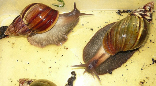 Links meine A. Fulica und rechts die unbekannte Schnecke!