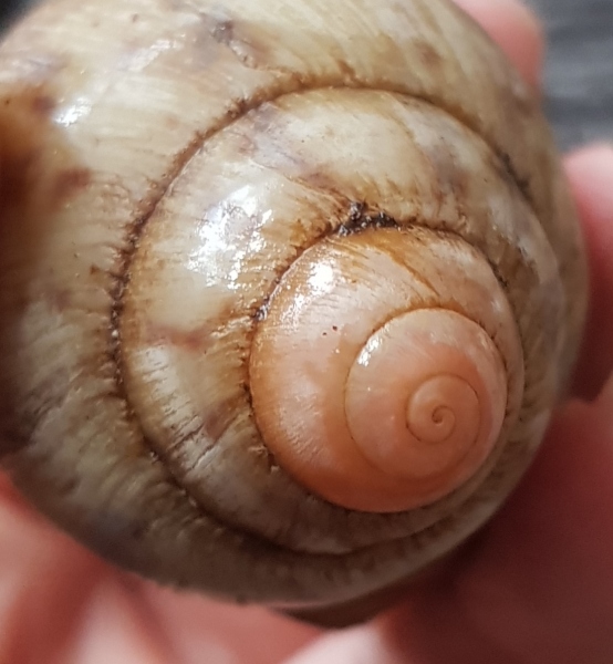 Die Columella ist teilweise rötlich, zusammen mit den anderen Merkmalen lässt sich das Tier in keine der bisher festgehaltenen Unterarten einordnen. Daher muss sie Archachatina marginata ssp. bleiben. Das gibt es ziemlich oft (eigentlich ist es sogar meistens der Fall, dass sich die Tiere nicht eindeutig zuordnen lassen, mit der clenchi war das echt Glück), ich sehe das bei den "kleinen" marginata-Arten inzwischen nicht mehr so eng mit dem Zusammenhalten, da es eben seltenst möglich ist, die Tiere einer Unterart zuzuordnen.