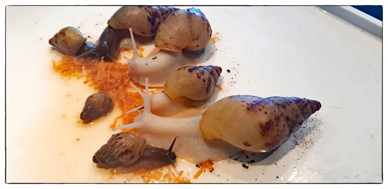 Vor zwei Jahren musste ich eine Operation an meiner Achillessehne vornehmen lassen und konnte meinen Fuss 3 Monate nicht belasten. Deshalb habe ich damals keine weiteren Gelege mehr schlüpfen lassen... Mein Schneckenzimmer befindet sich im unteren Stock unseres Hauses und so musste ich die Pflege meiner Schnecken jemand Anderem überlassen...Leider sind meine Zuchttiere während dieser Zeit gestorben.