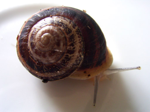Jetzt die Frage an die Spezialisten: Was könnte das sein? Ich habe beim Ritt durch den D*er kurz vermutet, eine Nudelschnecke in Händen zu halten - seitdem sie wächst und wächst und immer mehr Streifen statt Sprenkel zeigt, bin ich mir nicht mehr sicher.