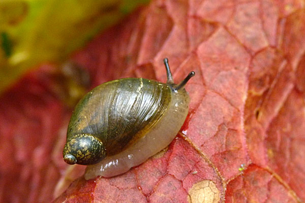 ... habe eine solche zum ersten Mal gesehen, zumindest in dieser Größe, in winzig meint man die ja öfter zu sehen. Sie saß sehr fotogen auf einem roten Blatt und hatte ein ca. 1-1,5 cm langes Häuschen. Zum Glück sind die Viecher nicht so schnell, so daß ich noch in Ruhe die Macrolinse vorschrauben konnte...