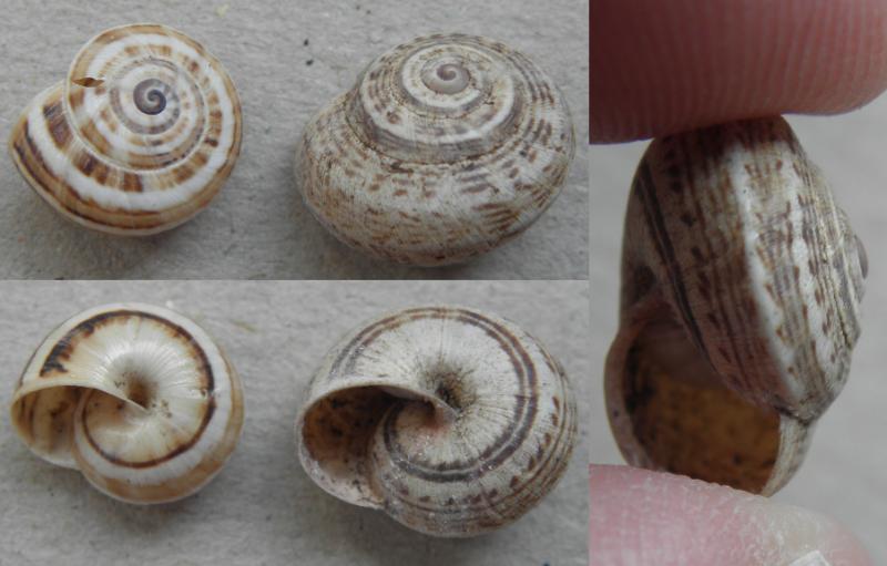 in einer alten Sammlung, die ich geschenkt bekommen habe, befinden sich diese Gehäuse mit einem Durchmesser von rund 1cm. Alle haben diese seltsame Kombination aus Punktstreifen und verdoppelten Streifen. Zum Fundort gibt es leider keine Angabe mehr, aber ich vermute, dass es sich um eine europäische Art handelt. Weiß jemand, was das für Schnecken sind?