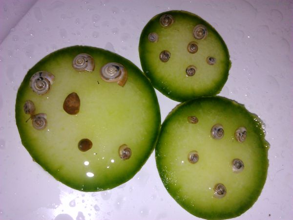 So, kleine Änderung, die Schnecks sind jetzt rausgekommen, Gurke und Wasser helfen da ganz gut