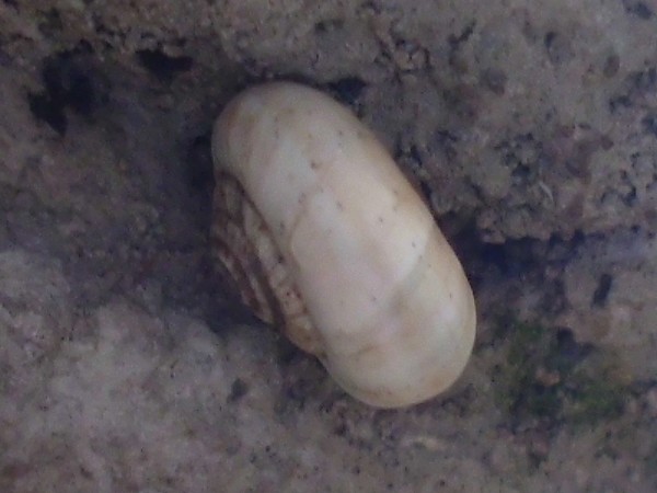 bei meiner gestirgen Exkursion zu den gefleckten Weinbergschnecken in Duisburg-Rheinhausen sah ich oben unter dem Mauervorsrung diese helle Schnecke, die auch nicht so recht zu den Bänderschnecken passt (natürlich hatte ich sie als Bänderschnecke fotografiert :wink: ).