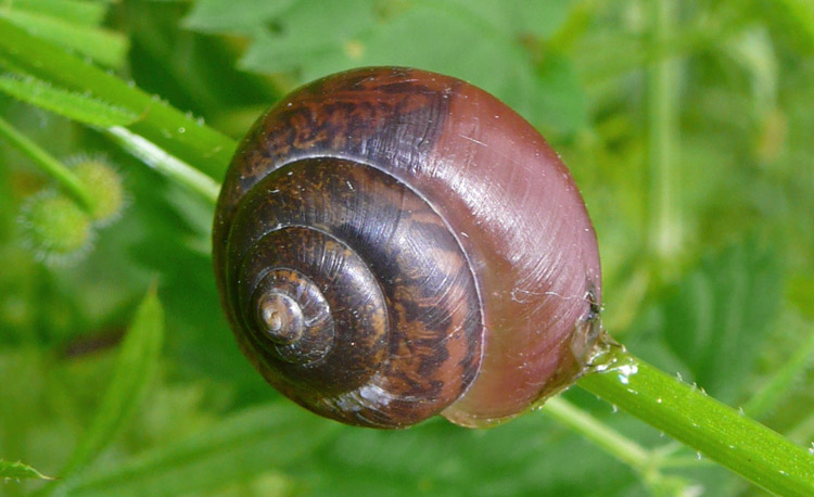 Bild 3: etwas schwierig (für mich). Es gibt ja auch rötliche Exemplare von Fruticicola fruticum, könnte also sein.......... . Das Tier scheint ja auch noch nicht ganz ausgewachsen zu sein. Mit einer Lupe müsste man bei der genannten Art eine feine, wellige Spiralskulptur erkennen können; anhand des vorliegenden Fotos kann man das natürlich nicht mehr überprüfen.........