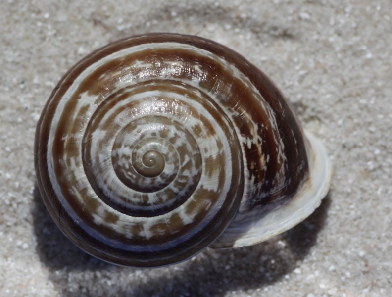 6. Ein bisschen schwierig. Garantiert Viviparidae, wie Du ja schon vermutet hast. Gut erhaltene Exemplare können durchaus sehr intensiv gefärbt/gebändert sein. In Deutschland kann man den Apex zur Diagnose heranziehen: Apex sehr spitz (mit dem Finger vorsichtig testen): V. contectus. Apex eher stumpf: V. viviparus. Dann kommt noch V. ater hinzu (in Italien heimisch, in Deutschland verschiedentlich eingeschleppt, z.B. in den Bodensee): auch da ist der Apex spitz. Dann ist noch wichtig, wie deutlich die Windungen stufig gegeneinander abgesetzt sind: bei V. contectus sehr deutlich, bei V. ater eher flacher. Allein von daher gesehen (ohne zu wissen, wie spitz der Apex ist) neige ich eher zu V. ater. Vorsicht: ein ursprünglich sehr spitzer Apex kann natürlich später erodiert/abgestoßen sein.