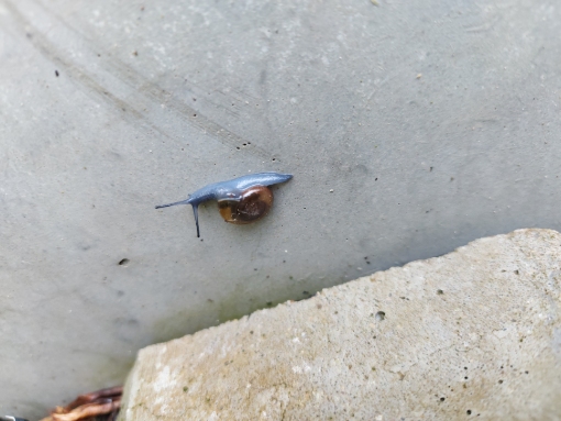 ich habe heute eine wunderschöne blaue Schnecke in meinem Mini-Gärtchen gesichtet.