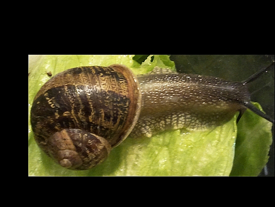 Beim Spazierengehen mit meinem Sohn habe ich eine relativ große (ca. 2,5-3 cm) Schnecke gefunden. Es war sehr schwül und sie saß mitten auf einem gepflasterten Weg und hatte sich schon ein wenig verkapselt. Inzwischen ist sie aber wieder guter Dinge und knurpst fröhlich an Kohlrabi- oder Eisbergsalatblättern rum. (Ich wusste gar nicht, dass Schnecken beim Fressen Geräusche machen!!!