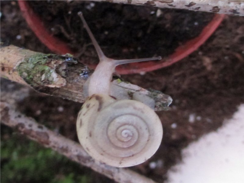 Gestern Abend fanden mein Freund und ich eine weiße Häuschen-Schnecke mit schwarzen Flecken. Der Fundort ist ein Wald in Baden-Württemberg auf den Hügeln des Remstals. Ich habe mittlerweile im Internet nachgeforscht, aber bin mir bei der Art der Schnecke nicht sicher. Ich denke es ist könnte vielleicht eine Häuschen-albinotische Baumschnecke sein. Die Schnecke ist noch nicht ausgewachsen, lässt sehr viel Wasser wenn sie sich erschreckt und ihr Körper hat in der Nähe des Kopfes einen rosanen Farbstich. Wir haben sie mittlerweile auch schon benannt, er/sie heißt Flöckchen