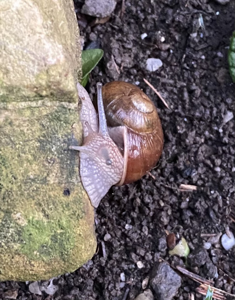 Richtig, das ist eine junge Weinbergschnecke, eine Helix pomatia