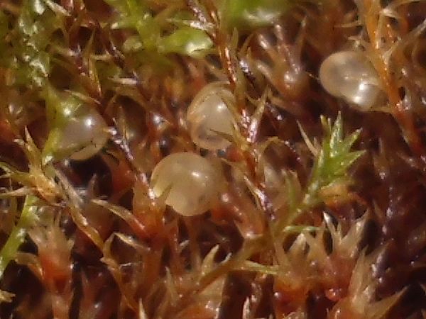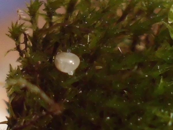 Dann habe ich mir die Eier etwas ausgebreitet, Foto und zählen (ich habe da so einige Erfahrungen mit der Zählung von Weberknecht-Kolonien gemacht): es sind 107 und das eine, das herumgetragen wird. Falls mir bei der Suche nicht noch welche entgangen sind.