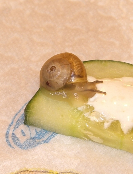 Näher betrachtet, hier beim ersten Kontakt mit Kalkbrei auf Gurke: