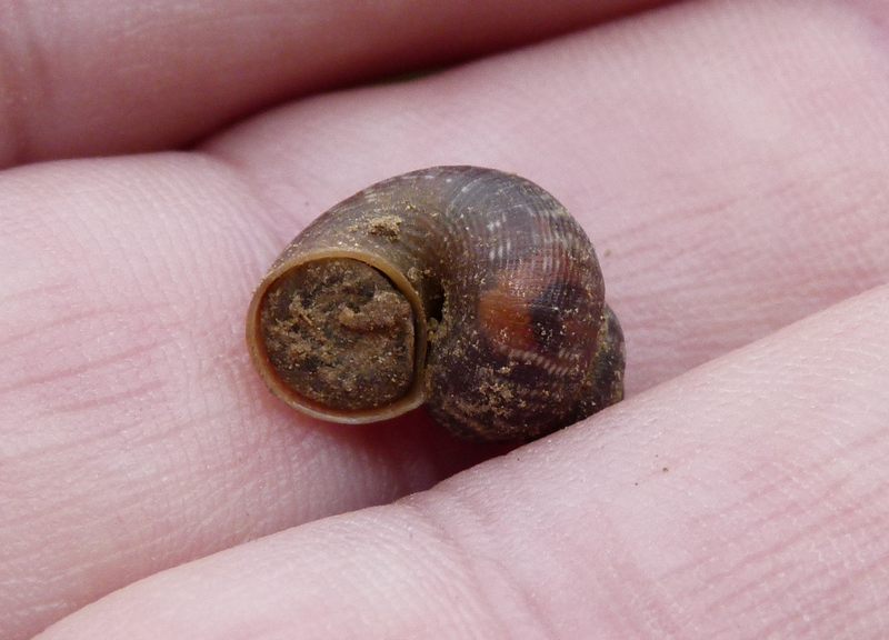 das dürfte eine Pomatias elegans, die Schöne Landdeckelschnecke, sein.