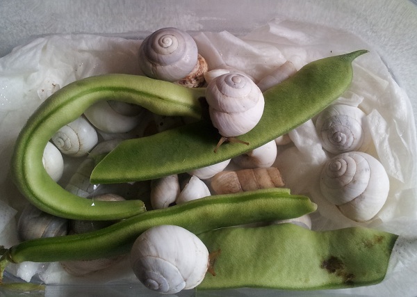 Auf die Gefahr hin totalen Unsinn zu erzählen würde ich meinen, dass die untere Schnecke mit dem flacheren Gehäuse eine Eobania sein könnte und die darüber mit dem spitzeren Haus eine Cornu aspersum.