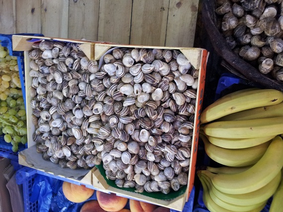 Da der Markt hier in einer etwas kühleren Halle war, mussten die Tiere zumindest nicht so wie die armen Seelen in Sagunt in der prallen Sonne schmoren. Wenigstens ein kleiner Trost...