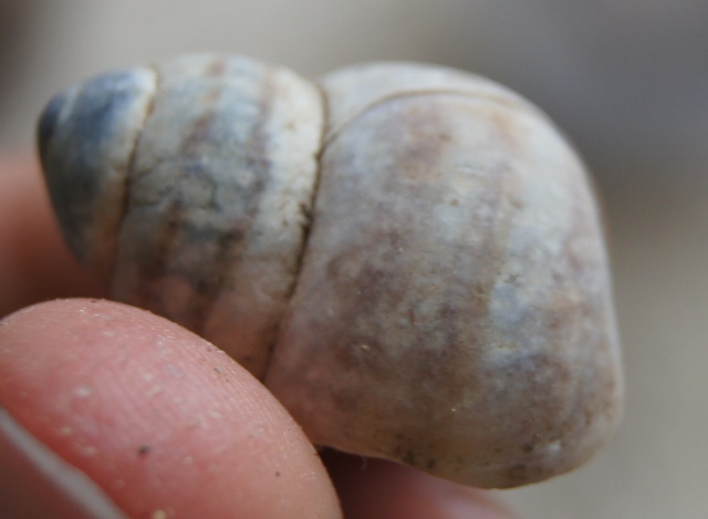 Dann habe ich noch eine recht große Gehäuseschnecke gefunden, die mir sehr sonderbar vorkam. Sie ist so groß wie eine kleine Weinbergschnecke, aber ziemlich flach. Das Gehäuse ist recht verwittert. Zu erkennen ist eigentlich nur ein dünner brauner Streifen, der sich auf dem Gehäuse der Länge nach erstreckt. Bilder kommen noch.