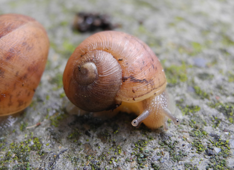 Ich habe neulich in meinem Garten zwei Jungschnecken entdeckt, die ich wirklich nicht zuordnen kann. Meiner Meinung nach sehen sie aus wie Cornu aspersum ohne Flecken, aber die Körperfarbe ist eher die einer Bänderschnecke und die Schale ist ziemlich dünn :eek: Aber seht selbst:
