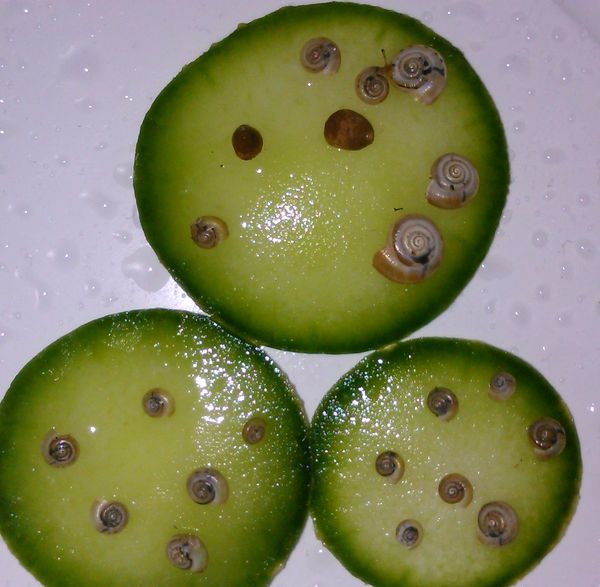 So, kleine Änderung, die Schnecks sind jetzt rausgekommen, Gurke und Wasser helfen da ganz gut