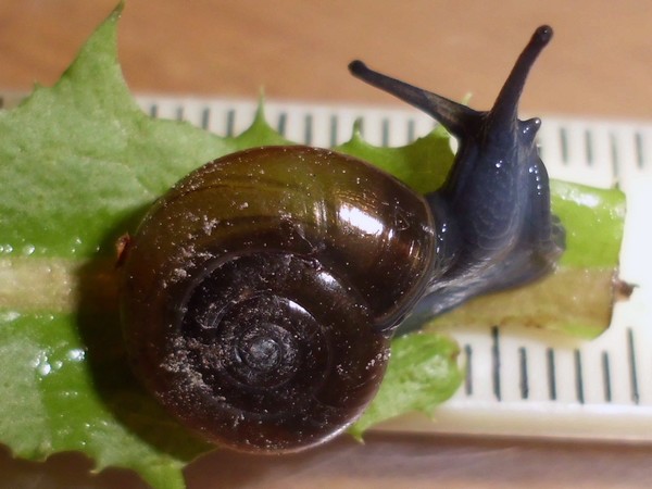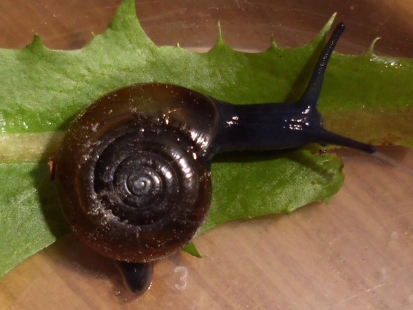 Das ist m.E. keine Aegopinella. Vergleiche mal mit Oxychilus cellarius (die haben auch eine Tendenz zur Carnivorie). Ist aber ggfs. vom ähnlichen Oxychilus draparnaudi nach Foto nicht einfach zu unterscheiden (einigermaßen häufig sind beide).