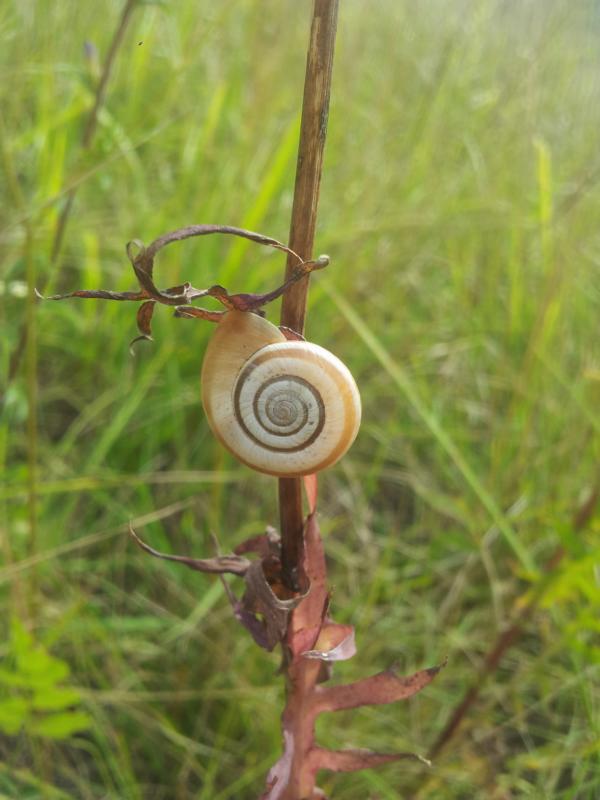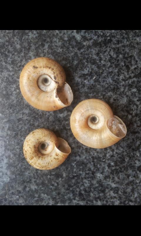 Ich hätte zunächst auf eine "Gemeine Heideschnecke" Helicella itala getippt, aber deren Gehäuse kommt mir (auf Vergleichsfotos) doch zu hoch vor (aber vielleicht wirkt das auch nur so?), die von mir gefundenen Schnecken sind wirklich sehr flach. Vielleicht ist zumindest die einzelne, gestreifte, die "Weiße Heideschnecke" Xerolenta obvia? Gibt es die wohl auch ungebändert? Oder bin ich total auf dem Holzweg?