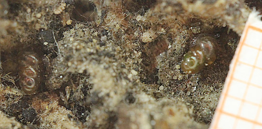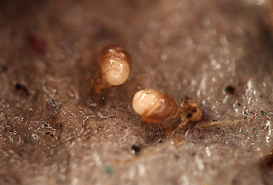 Manchmal legen die Schnecken auch Eier in dieser Grösse, aber oft so spät, dass sie direkt schlüpfen.