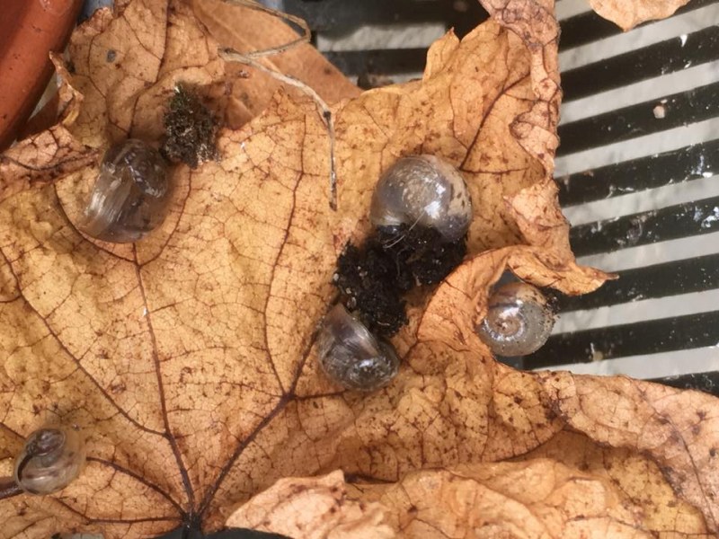 Ich hatte schon Schnecken, Fulis usw. sie haben aufgekalkte Erde, Flechtenzweige, Moos, Sepia, ein Kohlrabiblatt und Verstecke usw. Für den Topf in dem die Weinrebe ist, sind es einfach viel zu viele Schnecken. Der hat einen Durchmesser von ca. 50 cm, ist genauso hoch und steht nicht frostsicher.