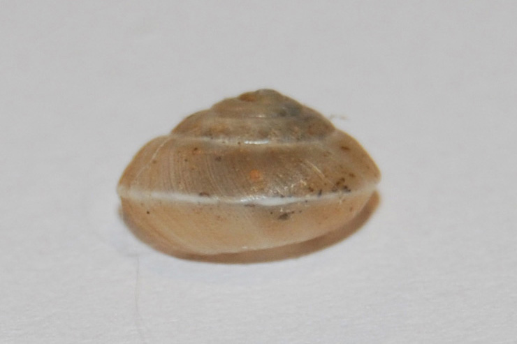 folgends schneckenhaus habe ich im waldrand gefunden. der waldrand grenzt direkt ans gewässer. ich konnte leider nicht herausfinden um was für eine schnecke es sich handelt. für eine hygromia cinctella scheint sie mir zu klein (durchmesser ca. 8mm) und zu flach (ca. 5mm). klar zu sehen ist eine kielung gekennzeichnet durch ein weisses band. die lippe ist einfach. das gehäuse ist leicht transparent.