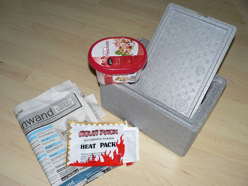 - Heatpack (Achtung! Heatpacks sind kein Garant dafür, dass die Schnecken bei kalten Temperaturen heil ankommen. Besser ist es, nur bei dauerhaft milden Temperaturen zu versenden, wenn man gar nicht auf ein Heatpack angewiesen ist. Sie halten nicht lange und wenn der Versand mal länger dauert, sind die Schnecken der Kälte trotzdem schutzlos ausgeliefert. Viele Heatpacks halten die Temperatur gerade mal 20 Stunden, sowas reicht nur bei optimalen Versandbedingungen.)