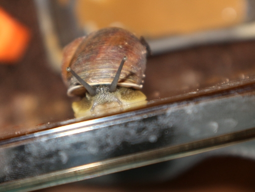 Wir waren vier Tage in Urlaub, nicht gesehen haben wir die Schnecken aber nur zwei Tage (am An- und Abreisetag war alles ok). Als Proviant hatten sie Gurke und Eisbergsalat sowie Sepia. Am nächsten Tag der Schock - eine der Schnecken sah unfassbar komisch aus, ich war der Überzeugung, dass sie tot ist. Sie quoll aus ihrem Häuschen, man hat fast keinen Körper gesehen, es sah aus wie eine Blase. Der Mantelsaum war total aufgequollen. Ich habe sie dann angesprüht und siehe da: Die Schnecke kam komplett zum Vorschein und schneckte fröhlich umher. Ich habe sie separiert, seitdem ist sie auf Diät. Später dasselbe Problem: Der Mantelsaum ist geschwollen, sie kommt nicht ins Häuschen. Nach einer Auffoderung kam sie aber auch hier wieder raus und kroch umher - sobals sie kriecht, sieht sie ganz normal aus. Dabei setzte sie auch ordentlich Kot ab - ich habe dabei durch das Entfernen des Kots etwas "nachgeholfen", da ich das Gefühl hatte, dass sie den nicht richtig rausbekommt und irgendwie verstopft ist. Tatächlich wurde sie danach viel munterer, schwoll ab und setzte direkt eine ordentliche weitere Ladung ab. Ich bilde mir eine gelbliche Verfärbung des Fußes ein.