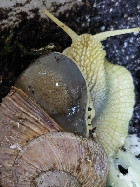 Das Positive ist, dass Helix pomatia einen Mantelvorfall sehr viel besser verarbeiten können als z.B. Cornu aspersum.