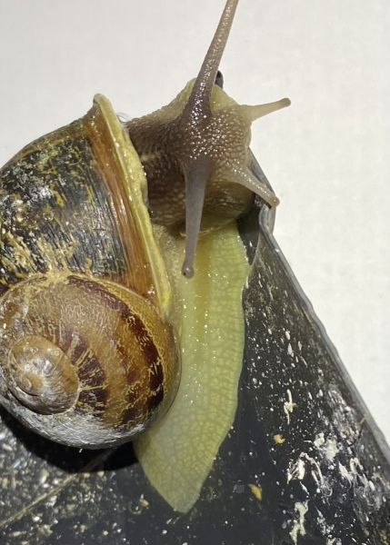 Ich beginne mal mit dem unschönen Teil. In einem englischen Forum wurde ein Thread von 2021 gefunden in dem eine Schnecke (im Folgenden als 1A betitelt) innerhalb eines Tages große Mengen gelben Schleim produzierte und verstarb. In den Kommentaren wurde von einer Krankheit namens "Yellow Flourescence" gesprochen, welche erstmals 1972 beschrieben wurde und (neben anderen Schneckenarten) auch bei Cornus auftritt. Diese Krankheit wird durch ein Bakterium ausgelöst. Die Schnecke war ca 1 Jahr alt und kurz zuvor wurde neue Erde verwendet.