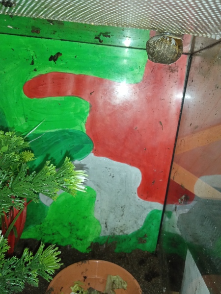 Zu feucht kann es nicht sein wenn dann zu trocken. Ich sprühe bei ihnen nie es steht aber eine Wasser Schale drin, die vor allem von der betroffenen Schnecke sehr gerne genutzt wird, einmal die Woche beim saubermachen werden die Scheiben feucht mit Zewa abgewaschen die Scheiben vorne kann man rausnehmen diese wasche ich ab und tue sie nass wieder rein sie trocknen dann da drin.
