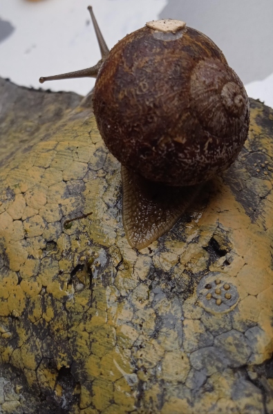 Gestern Abend war er wieder wach. Fotos habe ich keine gemacht da er mit einer anderen Cornu aspersum 'sehr beschäftigt' war :roll: . Ich hab auch grade mal ein Heilerdebad reingestellt, schaden kann es ja nicht.