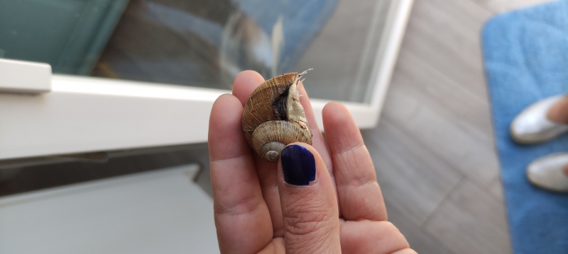 Mir ist gestern vor dem Auto eine Weinbergschnecke aufgefallen. Sie war wahrscheinlich ein blinder Passagier, denn ich war in einem Gebiet in dem es viele von ihnen gibt, aber hier wo ich wohne findet man sie eigentlich nicht.