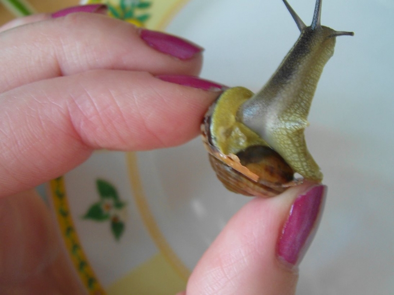 habe heute nach dem Regen ein wenig nach Schnecken Ausschau gehalten und dabei einen kleinen Patienten entdeckt und mitgenommen... okay, eigentlich 2, aber Nr 2 scheint gut im Reparieren zu sein... Nun weiß ich nicht recht, wie ich mit Nr. 1 fortfahren soll..