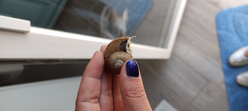 Mir ist gestern vor dem Auto eine Weinbergschnecke aufgefallen. Sie war wahrscheinlich ein blinder Passagier, denn ich war in einem Gebiet in dem es viele von ihnen gibt, aber hier wo ich wohne findet man sie eigentlich nicht.