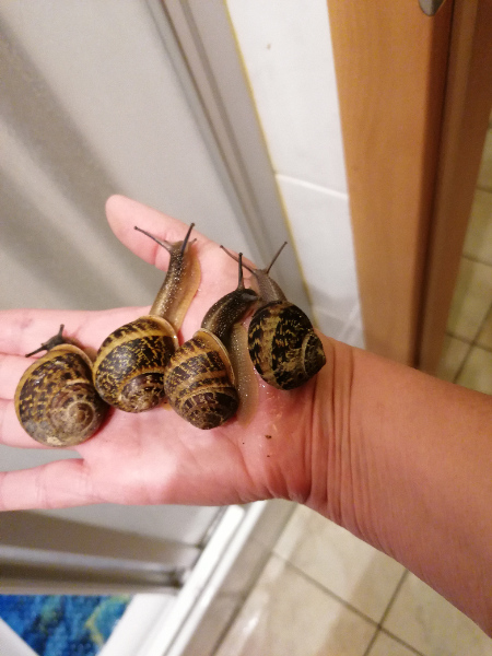 ich bin so traurig...mein Hänsel ( Cornu) ist heute über die Schneckenregenbogenbrücke gegangen :cry: ich weiß nicht was er hatte ( ich sage er weil es auch eine Gretel gibt).. er war ca 1,5 Jahre alt, die ganze Zeit pumperl gesund. Er lebte mit 4 anderen Cornus in einem 80x40x40 Terra und war der agilste und schnellste von allen wenn es ans Futter oder Paaren ging. Am Sonntag fiel er plötzlich aus der Korkröhre die schräg gestellt im Terra steht, und blieb auf dem Rücken liegen. Ich setzte ihn wieder rum und er benahm sich wieder normal. Ab Montag wurde er immer träger, frass nicht, lag dann auf der Seite, ich hab soviel versucht, Babygläschen, seine geliebten Süsskartoffel gerieben, er nahm nichts zu sich untersuchte aber mit den Fühlern das Futter, als ob er nicht fressen konnte....nichts geschwollen oder auffälliges an Mund, ich versuchte es abwechselnd mit Zuckerwasser, Mehl/Stärkesuppe, Seemandelbaumbad, ( natürlich nicht alles hintereinander, immer mit Stunden dazwischen),immer wenn er wo drinn sass hatte ich das Gefühl er fühlte sich wohl, kam raus aus dem Haus und badete darin bis er von selbst rausging, auch das Heilerdebad genoss er sichtlich, schneckte irgendwann raus und legte sich komplett ausgezogen mit dem Weichkörper hin, Fühler eingezogen. Nachts war wieder aktiv und sass morgens oben auf dem dicken Ast. Mittwoch ging es wieder schlechter, er zog sich komplett ein, ich separierte ihn weil Gretel versuchte sich mit ihm zu paaren. Er zog sich in seinen Blumentopf auf Löwenzahn zurück, und heute morgen sah man nur noch die Fußspitze...da wußte ich wo die Reise hingeht, und liess ihn in Ruhe sterben. Ich wollte ihn nicht frosten, ich denke man darf auch als Schnecke einfach...rüberschlafen... :( Hat jemand eine Ahnung was das gewesen sein konnte??? Alle anderen sind top fit. Es gab kein anderes Futter, nur neue Apfelbaumäste und Sonnenblumen aus meinem Garten..ich frage mich ob ich was übersehen habe, etwas hätte tun können...