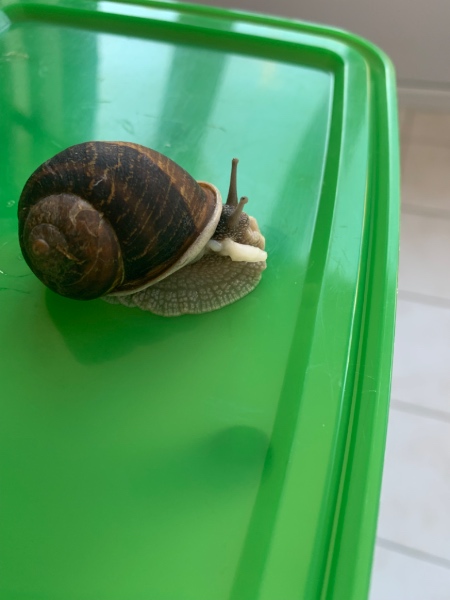 Bilbo hat noch einen Kumpel (Nemo), den mein Freund verletzt in seiner Garage fand, das Gehäuse ist fast wieder ok. Wir haben eine Quarantäne von mehreren Wochen gemacht und die beiden kürzlich zusammengesetzt, da Schnecken ja nicht gern allein sind.
