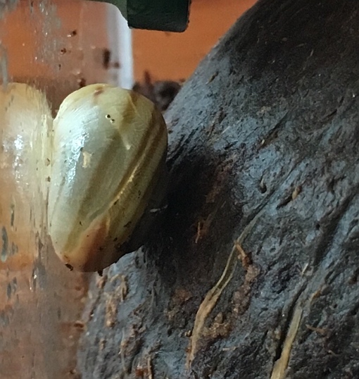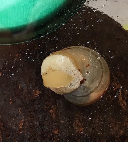 - Um Schneckis Gehäuse sorge ich mich: es ist noch recht durchsichtig (normal, weil jung?) und sieht sehr matt aus. Und gestern ist mir aufgefallen, dass sie eine Art Kratzer oder Einkerbung am Gehäuse parallel zum Wachstumsrand hat - habe ich hier im Forum noch nicht gesehen und auch bei den Schneckenhäusern im Garten wäre mir sowas noch nicht aufgefallen. Am letzten Bild sieht man es deutlich. Was sagt ihr dazu? Fehlt ihr was? Was kann ich tun?