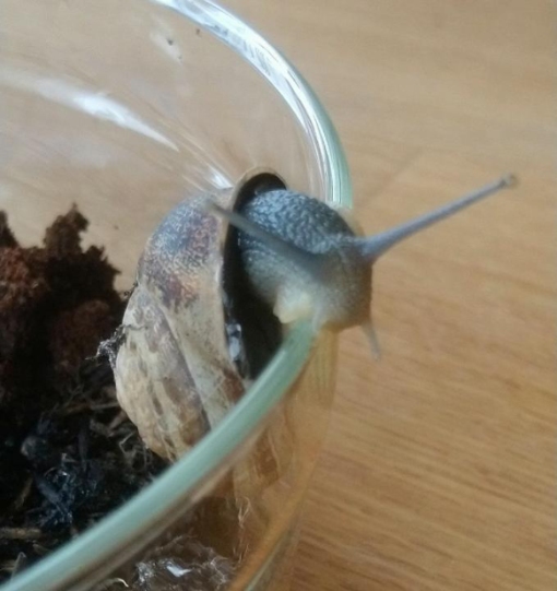 Sie lebte.... Ich setzte sie in ein Glasgefäss und gab ihr Salat, Gurke und Wasser. Es war herrlich sie zu beobachten. Inzwischen sind 4 Monate vergangen und ich überlegte bis vor kurzem noch , ob ich sie einfach aussetzen darf. Sie ist sehr aktiv, anscheinend sehr unkompliziert, hab ihr immer viel verschiedene Dinge angeboten, viel gelesen und ich hab den Eindruck, sie ist quietschfidel. Nur über ein paar Dinge bin ich mir noch nicht im klaren: