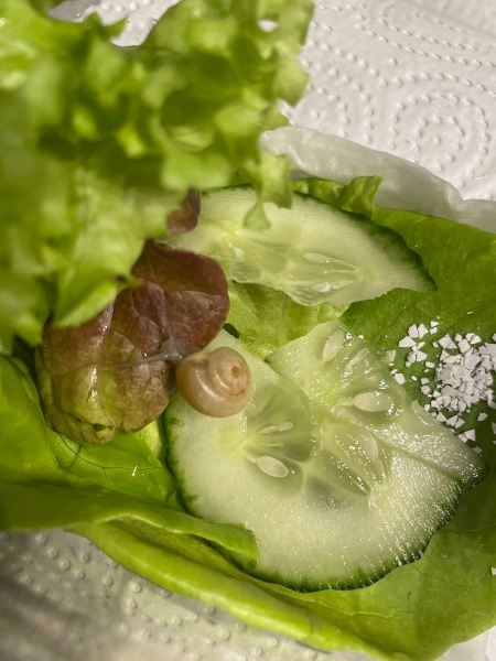 ich suche ein artgerechtes neues Zuhause für einen blinden Passagier. Die kleine Schnecke kam vor einigen Wochen mit einem Eisbergsalat zu mir.