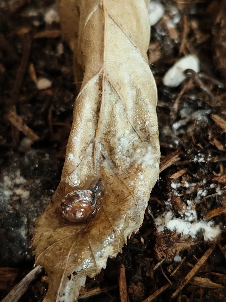 Sie verkricht sich immer in Blättern und kommt nur raus, wenn viel Feuchtigkeit da ist und hält sich fast nur an den Stellen auf, an denen sich Wasser sammelt.