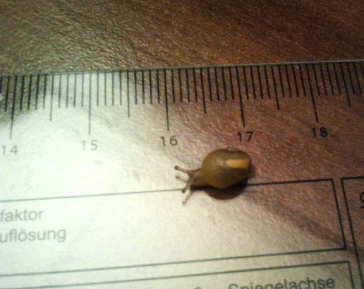 Ich habe gestern abend ein kleines Schneckenkind in meinem Rucola Salat gefunden.