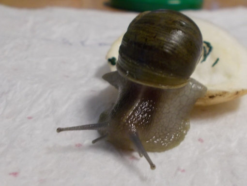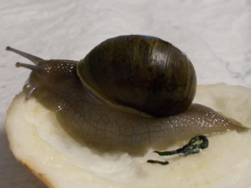 Allerdings ist die Schnecke ungewöhnlich kräftig und dunkel - verglichen mit den Grunzschnecken, die hier normalerweise in Salaten entdeckt werden.