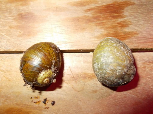 Meist sind deren Häuser hellbrauner und der Körper zeigt keinen so deutlichen Aalstrich. Und ich vermute, die meisten gefundenen Schnecken sind kleiner. Ob sie einfach nur jünger sind?