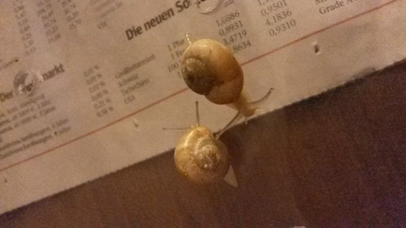 Ich hatte zwar die Erde gekalkt, aber vermutlich zu wenig. Ich habe jetzt nochmal nachgekalkt und getestet und bin bei PH 7. Außerdem biete ich jetzt 1x wöchentlich einen Kalkbrei an mit Heilerde. Seitdem sehen die Häuschen auch besser aus. Ich hab hierzu jetzt reines Calciumcarbonat im Internet bestellt https://www.amazon.de/dp/B00KB1HW4U/ref ... TE_3p_dp_1) und gebe wöchentlich 1 TL Kalk, 1 TL Babybrei milch-und zuckerfrei, 1/2 TL Heilerde und ein paar Gammarus. Es scheint ihnen sehr gut zu schmecken. Die Fotos habe ich alle auf dem Handy, sind aber leider jetzt dann auch nicht mehr aktuell und auch nicht sehr gut. Es sind auf jeden Fall 3 sehr große dabei, die anderen scheinen kleiner zu bleiben.