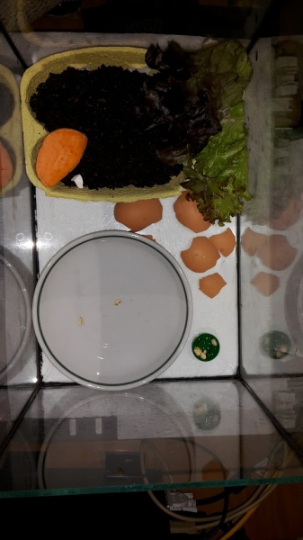 Jedenfalls frisst sie gut bis sehr gut, an manchen Tagen vielleicht sogar zu gut? An manchen Tagen sind ihre "Häufchen" so groß, dass sie kaum ins Schneckenhäuschen passen würden!