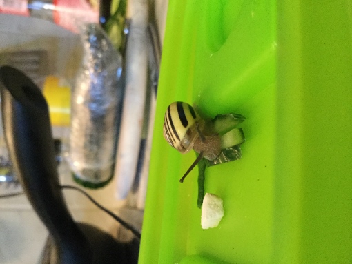Ja schnecken Freundin ist gut, mitlerweile bin ich schon richtig verliebt, wie süss die die gurkenschalen hält und isst :-D zum verlieben.