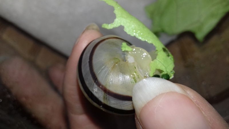 Sie hatte sehr Glück, dass ich sie sah, denn sie war sehr klein. Meine Theorie ist, dass sie im italienischen Endiviensalat saß, den die Meerschweinchen bekommen haben. Nun hat sich ihre Größe vervierfacht und es ist wirklich Wahnsinn, was sie so auffuttern kann. Dass sie nicht heimischen ist, ist schon mal klar. Ich vermute stark, es ist eine Nudelschnecke. Was meint ihr?